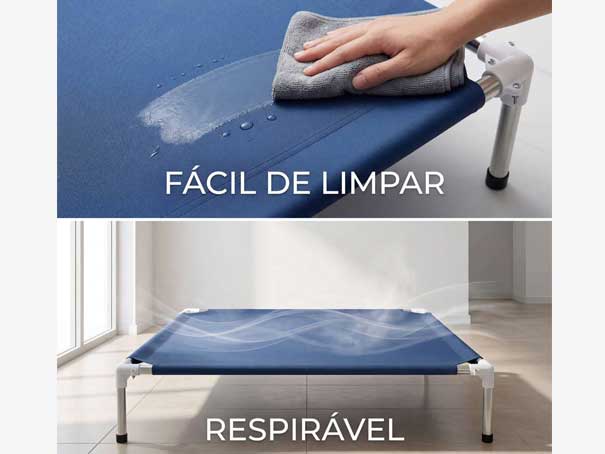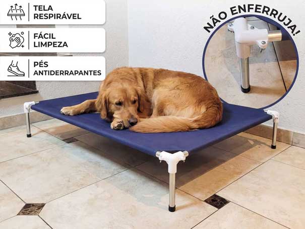 Fácil e prática para montar, a caminha pet suspensa vai se tornar o segundo melhor amigo do seu cão.