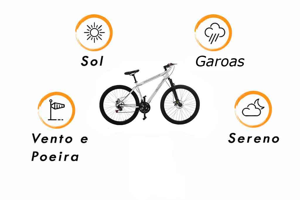 Além disso, possui fecho com botão regulador para manter a bike protegida inclusive contra tempestades de vento.
