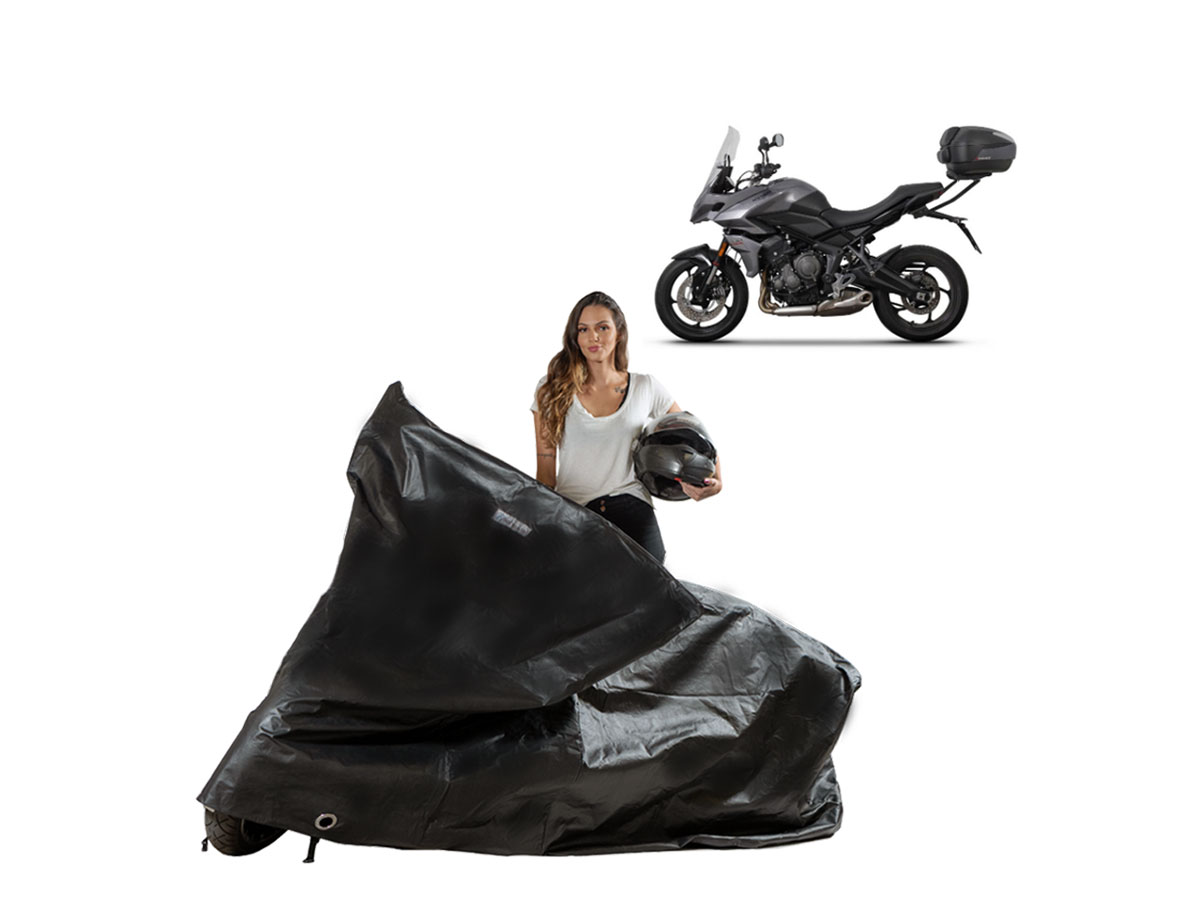 A Capa Cobrir Moto Térmica Triumph Tiger 660 Sport Com Baú é resistente ao Sol, Chuva, Poeira e animais domésticos de pequeno porte, podendo ser utilizada em ambientes internos ou externos.