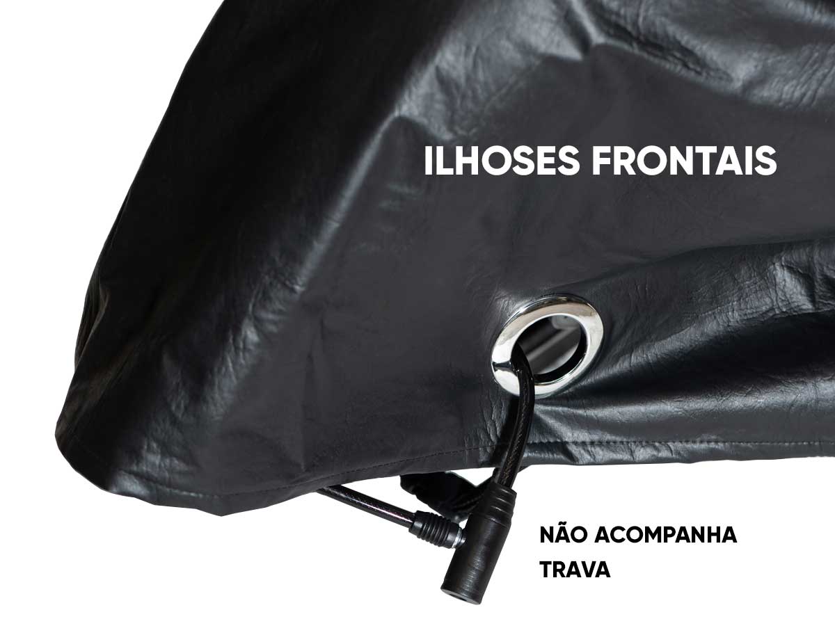Com camada de proteção UV para raios solares, não resseca e não permite ação do sol sobre a moto. Além disso, possuem argolas frontais para que possam ser utilizadas correntes antifurto.