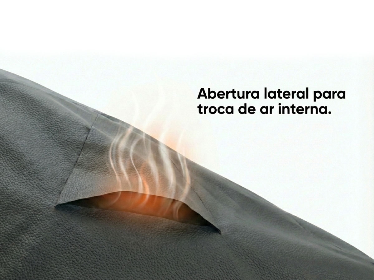 Para evitar o efeito estufa interno, a capa possui respiro lateral grande, protegendo e conservando a pintura do veículo.