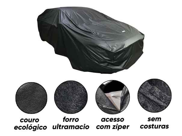 Confeccionada em Couro Ecológico de alta durabilidade, a Capa de Cobrir Carro Impermeável Universal Kahawai é resistentente e pode ser utilizada em ambientes abertos.