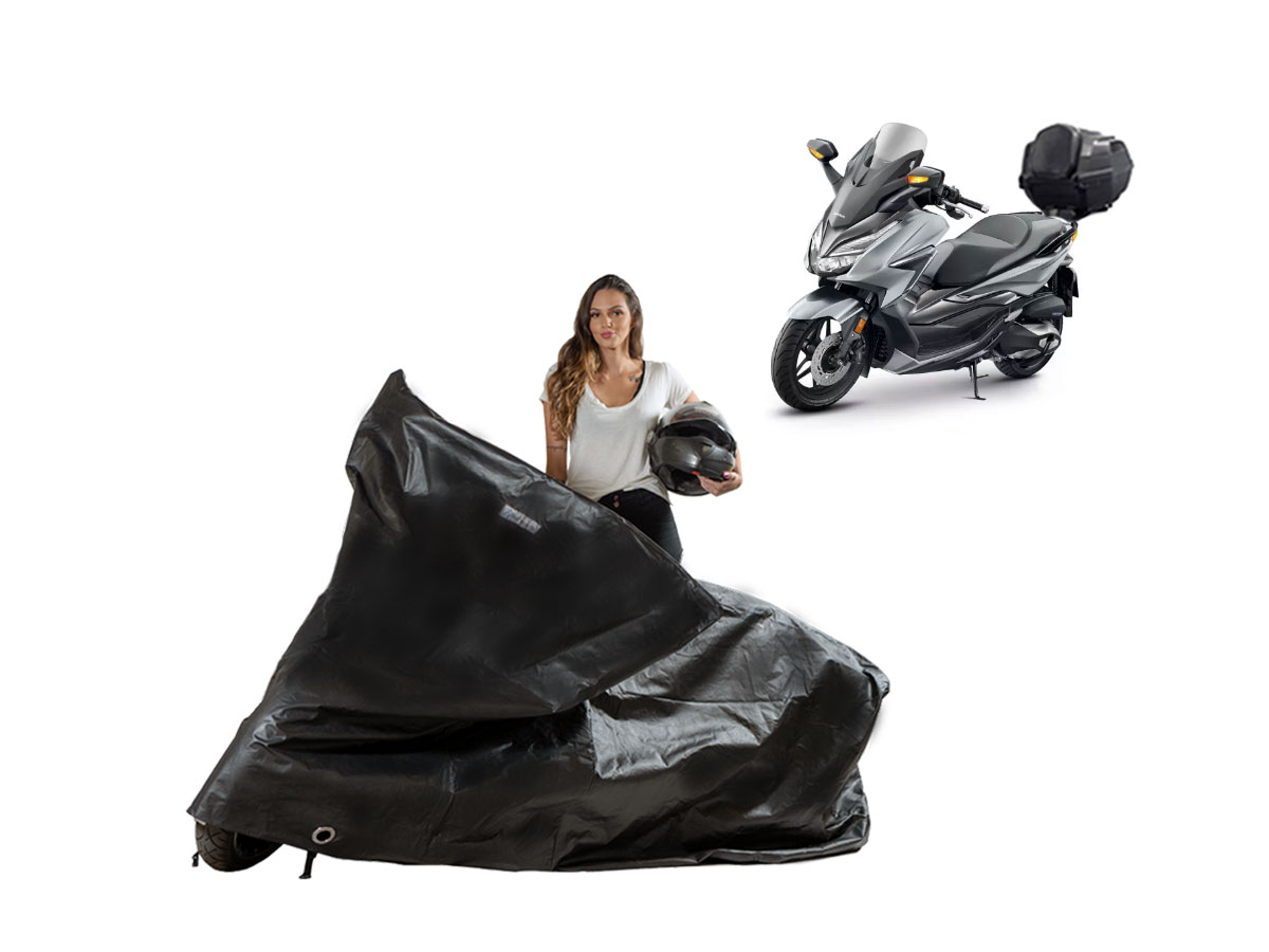 A Capa Proteção Moto Honda Forza 350 Com Baú Bauleto é resistente ao Sol, Chuva, Poeira e animais domésticos de pequeno porte, podendo ser utilizada em ambientes internos ou externos.