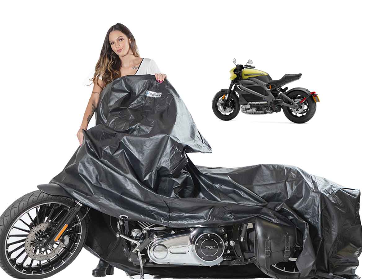 A Capa Protetora Harley Davidson Elétrica LiveWire Forrada é resistente ao Sol, Chuva, Poeira e animais domésticos de pequeno porte, podendo ser utilizada em ambientes internos ou externos.
