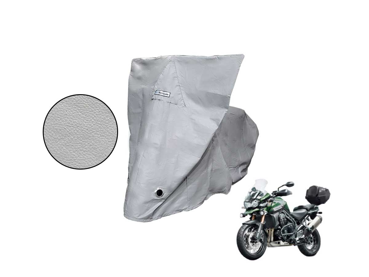 A Capa Protetora Moto Triumph Tiger 1200 XCA Com Baú Cinza é resistente ao Sol, Chuva, Poeira e animais domésticos de pequeno porte, podendo ser utilizada em ambientes internos ou externos.