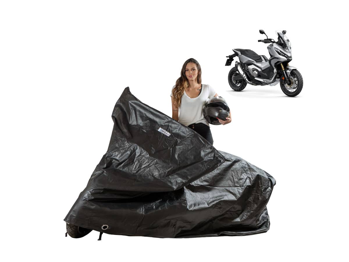 A Capa Protetora X-ADV 750 Impermeável Forrada é resistente ao Sol, Chuva, Poeira e animais domésticos de pequeno porte, podendo ser utilizada em ambientes internos ou externos.