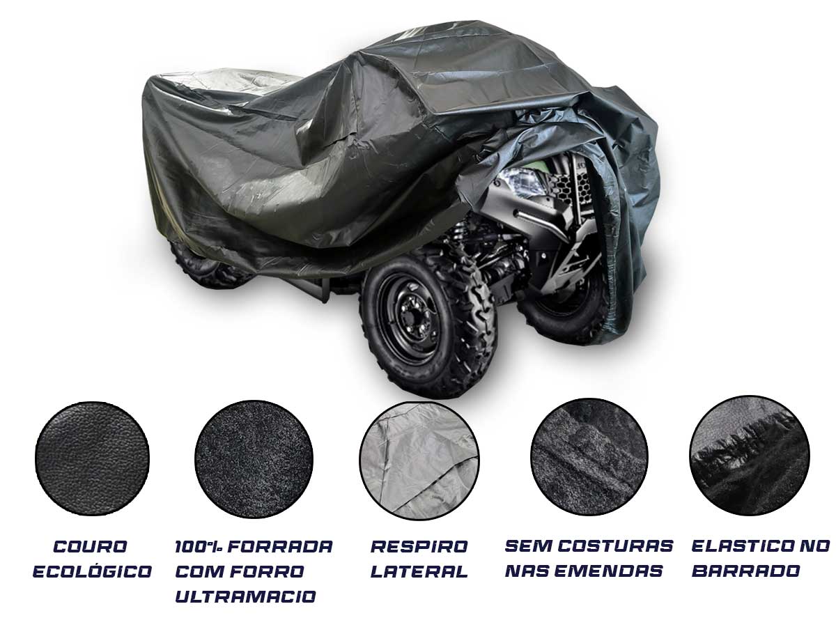 Com design exclusivo, protege o seu quadriciclo por completo, ajudando a preservar e valorizar seu patrimônio.