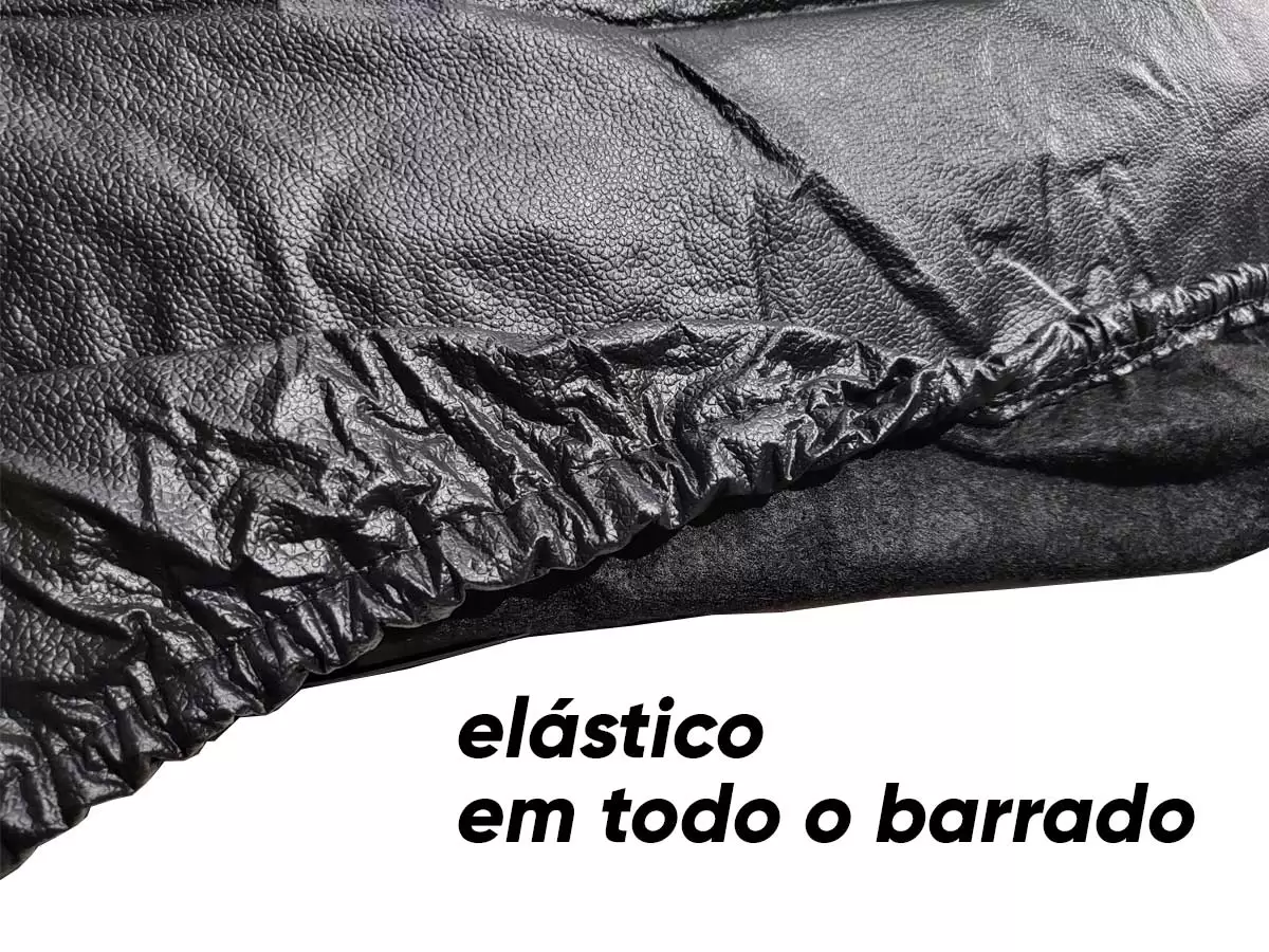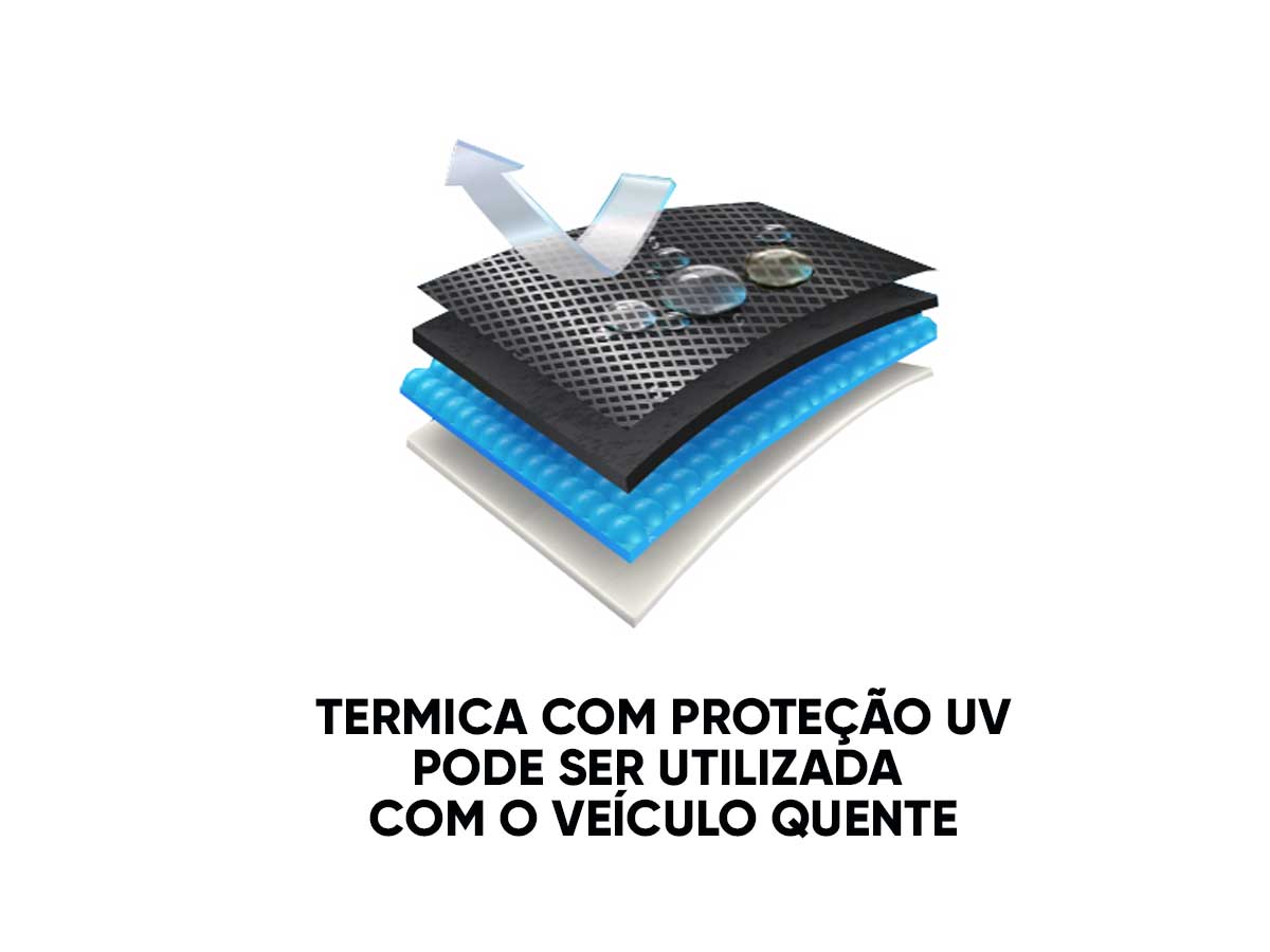 – Com respiros laterais, 100% forrada internamente com manta ultramacia de poliéster para não riscar o veículo, elástico em todo o barrado, sem costuras tornando o produto 100% impermeável;