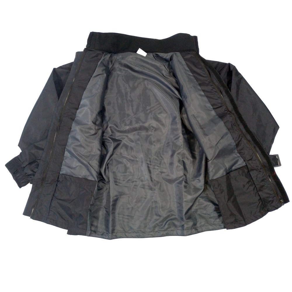 2. Jaqueta forrada, com zíper, velcro e canaleta frontal para evitar entrada de água;