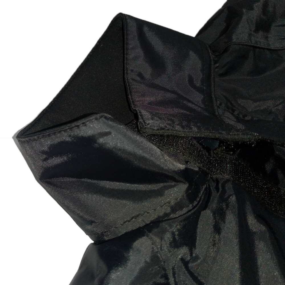 Além disso, há um velcro para fixação evitando que a água escorra por dentro do conjunto tonando 100% impermeável e proporcionando o conforto e segurança adequados independente do tipo de chuva.