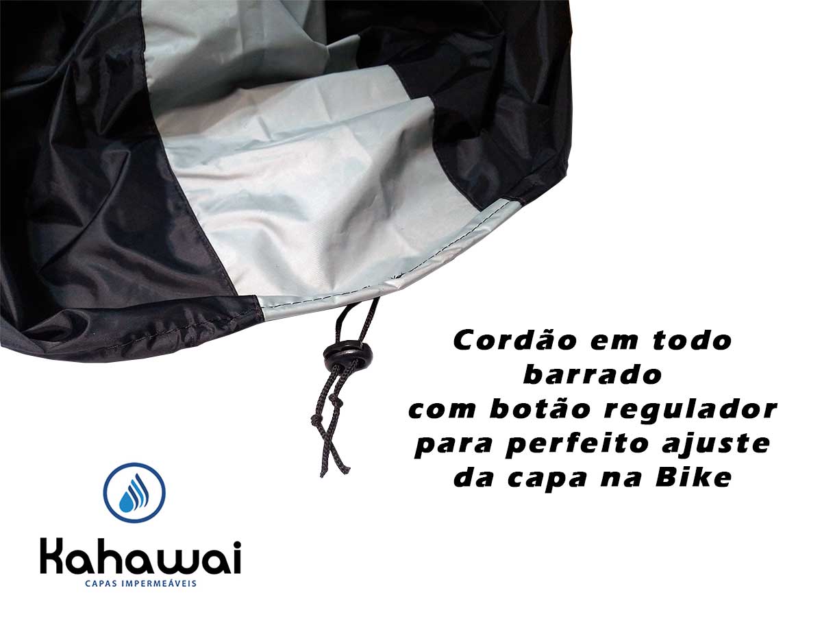 Além disso, possui fecho com botão regulador para manter a bike protegida inclusive contra tempestades de vento.