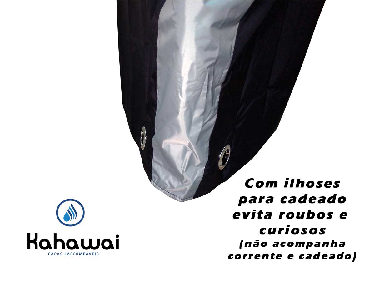 Com design exclusivo, protege a bike por completo contra curiosos também, principalmente em condomínios e locais abertos, além de conter ilhoses para facilitar a passagem de cadeados e correntes.