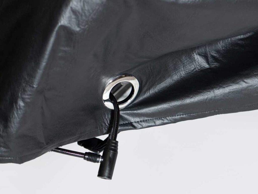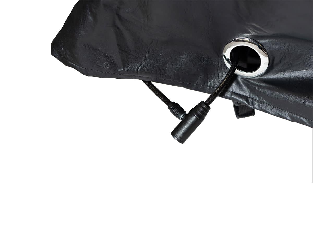 Pode ser utilizado também para maior proteção do veículo contra furto da capa, ou até mesmo, curiosos.